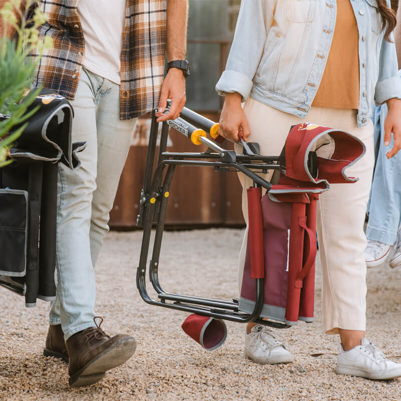 Portable rockers easily fold flat using Eazy-Fold™ Technology, allowing quick setup and compact storage. Simply pull up or press down on the designated points, and secure with integrated straps or handles.